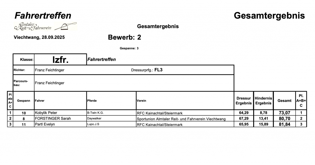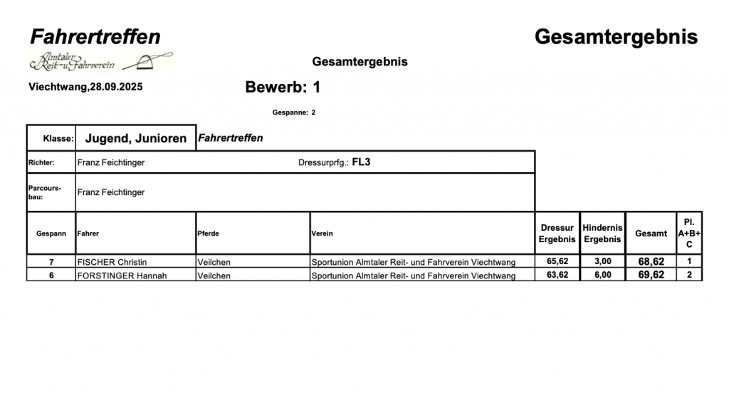Ergebnisse Fahrertreffen 28.09 by Nicole Strasserupdated on 8. Oktober 2025Leave a Comment on Ergebnisse Fahrertreffen 28.09