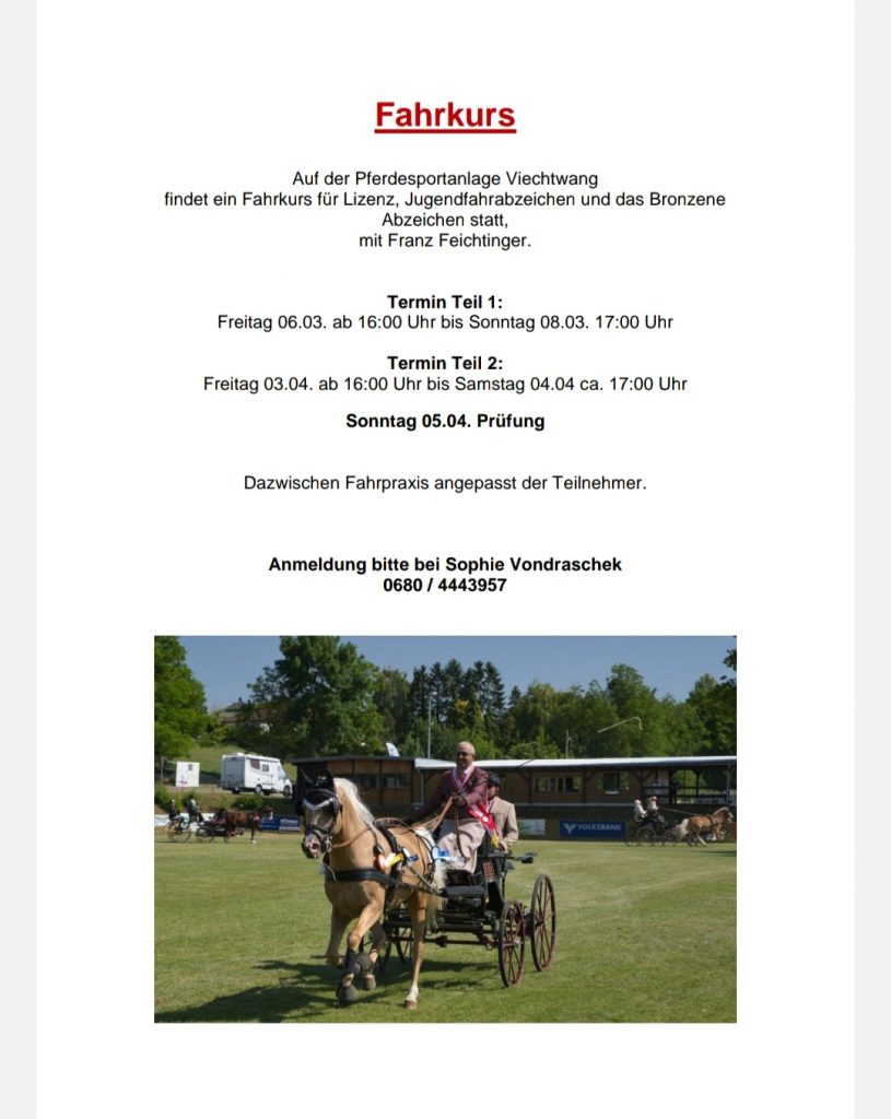 Termine für unseren Fahrkurs mit Franz Feichtinger stehen fest by Nicole Strasserupdated on 20. Januar 2026Leave a Comment on Termine für unseren Fahrkurs mit Franz Feichtinger stehen fest