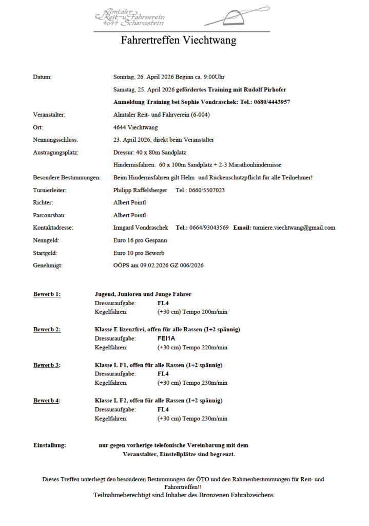 Ausschreibung Fahrertreffen 26.04.26 by Nicole Strasserupdated on 26. Februar 2026Leave a Comment on Ausschreibung Fahrertreffen 26.04.26