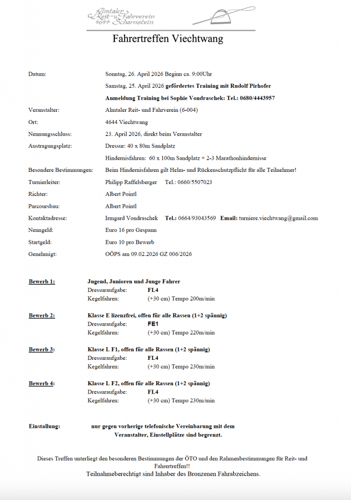 Ausschreibung Fahrertreffen 26.04.26 by Nicole Strasserupdated on 5. März 2026Leave a Comment on Ausschreibung Fahrertreffen 26.04.26