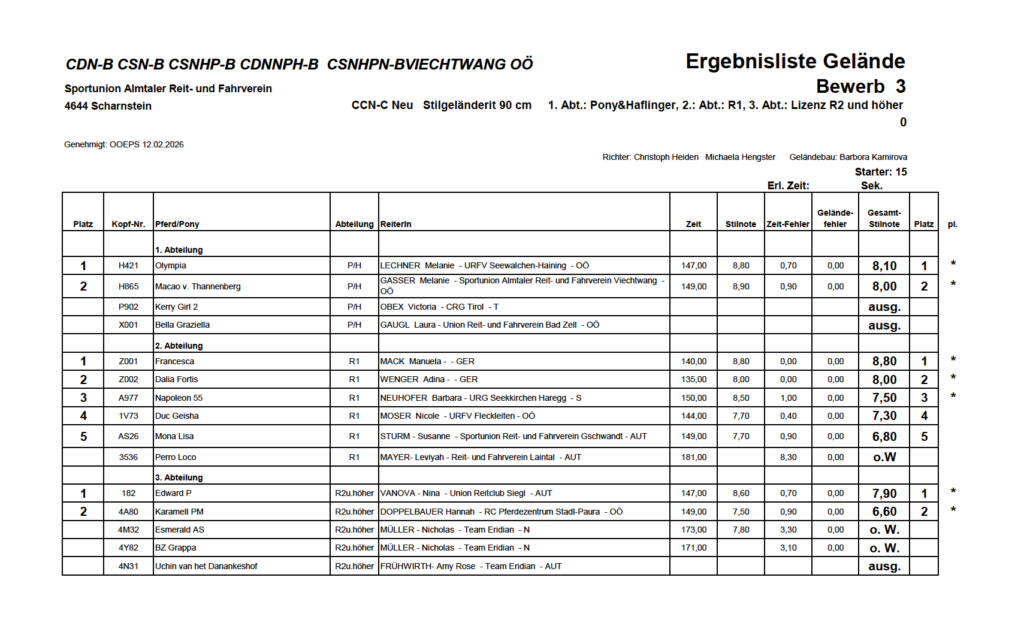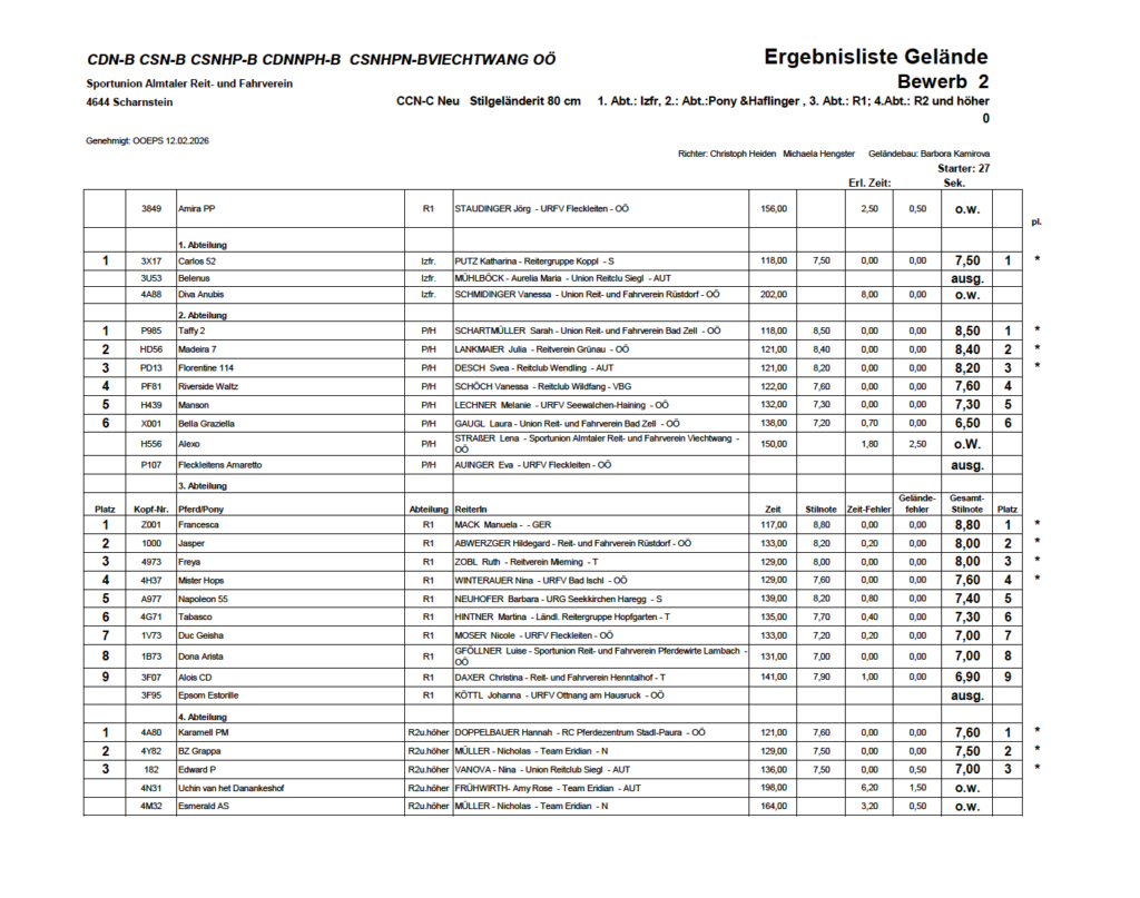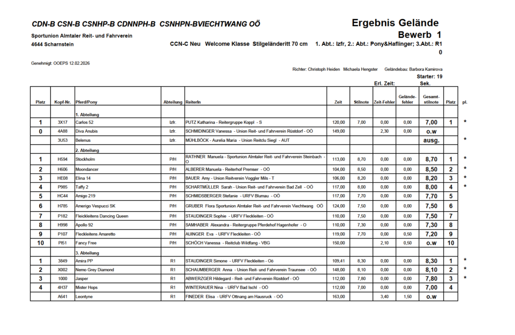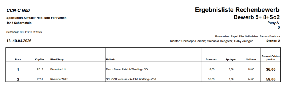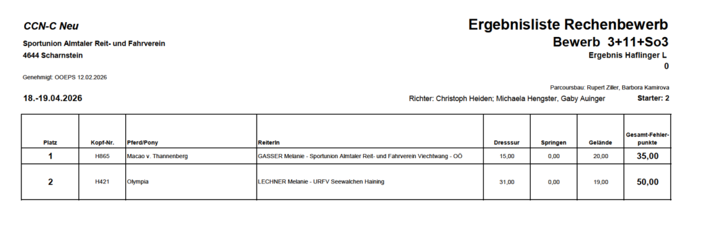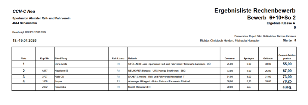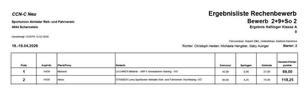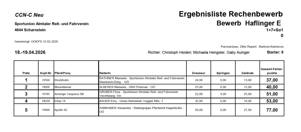 Ergebnislisten 19.04.2026 by Nicole Strasserupdated on 20. April 2026Leave a Comment on Ergebnislisten 19.04.2026